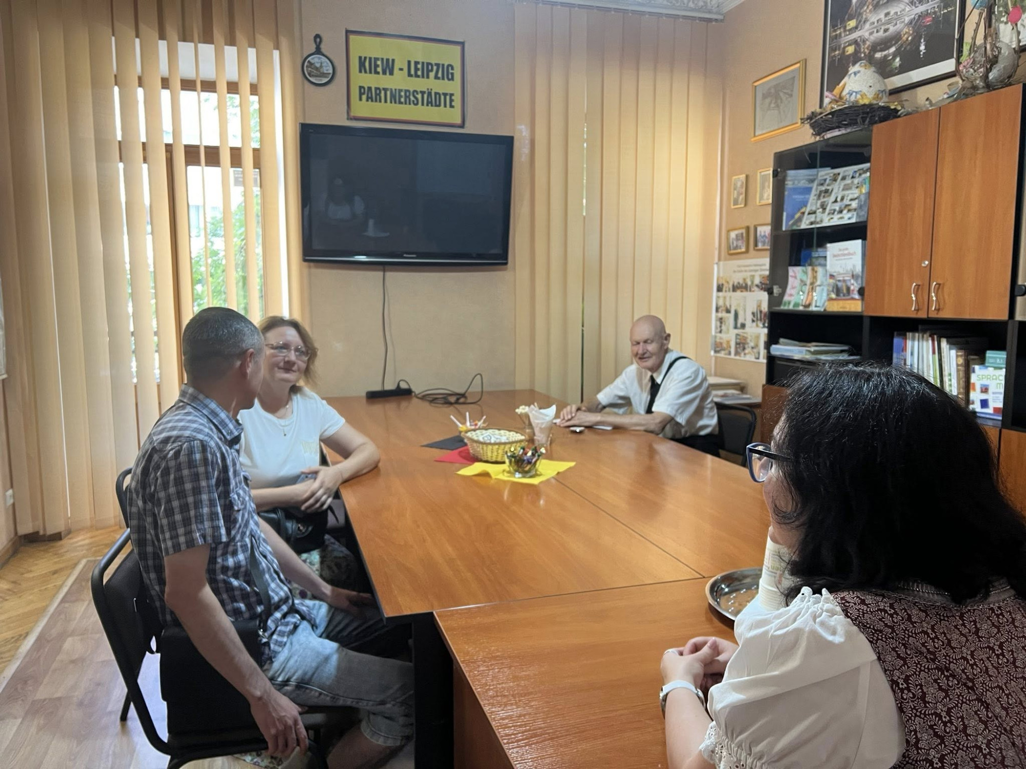 Unsere Gäste empfingen wir auf unsere Weise – offenherzig und mit liebevoll zubereiteten Köstlichkeiten, die von einem Mitglied unserer Gemeinschaft selbst gemacht wurden. Und auch mit dem Logo unseres Zentrums – als Symbol der Einheit und Fürsorge.