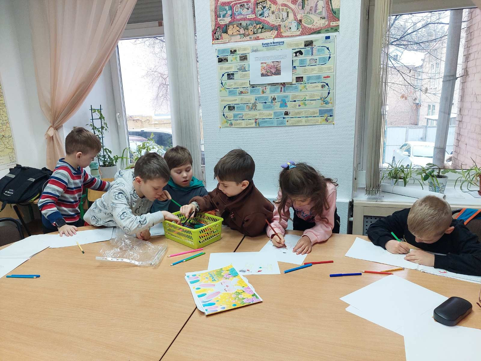 За дні занять діти створили яскравий плакат із відвіданих міст, доповнивши його новими словами до кожної теми, і навіть не помітили, як швидко пролетів час…